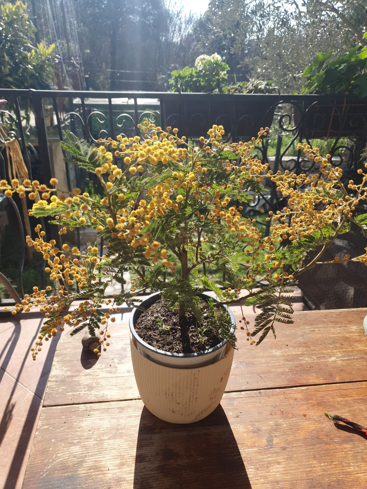 Умеренное питание + глубокий редкий полив + защита от перегрева = устойчивая компактная мимоза, адаптированная к ветру и жаре.